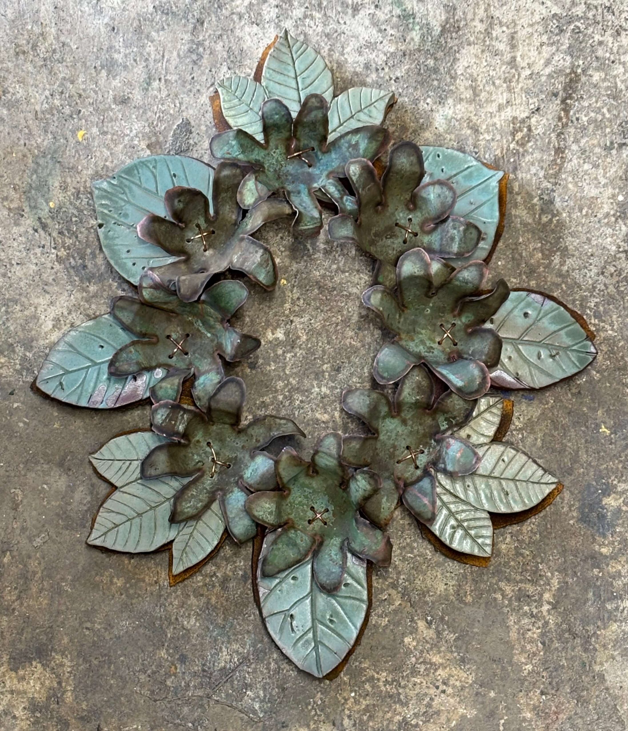 ceramic, corten steel, copper